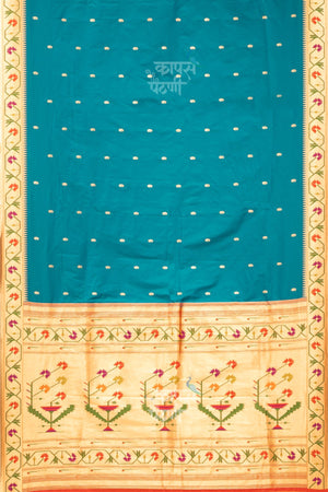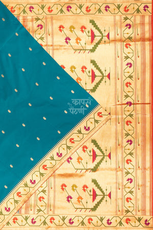 Graceful and elegant, this Traditional Asavali Border Designer Saree in a rich teal shade is crafted from semi silk fabric, blending comfort with classic charm. The intricate Asavali floral border adds a heritage touch, while the subtle jari mango butti enhances its refined appeal. Perfect for festive and traditional occasions, this saree offers a timeless and sophisticated look.