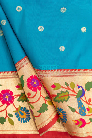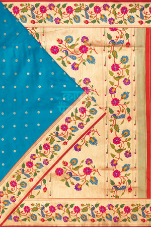 Add a touch of elegance to your wardrobe with this Designer Peacock Parrot Floral Border Saree in a rich teal blue shade. Crafted from luxurious silk, it showcases a vibrant floral border with intricate peacock and parrot motifs, complemented by subtle jari butti across the body. The rich pallu enhances its traditional appeal, making it a perfect choice for festive and special occasions.