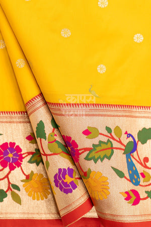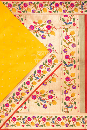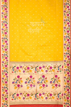 Elevate your ethnic wardrobe with this elegant Designer Peacock Parrot Floral Border Saree in a vibrant yellow shade. Crafted from smooth silk, it features a beautifully detailed peacock and parrot floral border that adds a traditional yet lively charm. The delicate jari butti across the body and rich pallu make it a perfect choice for festive and special occasions.