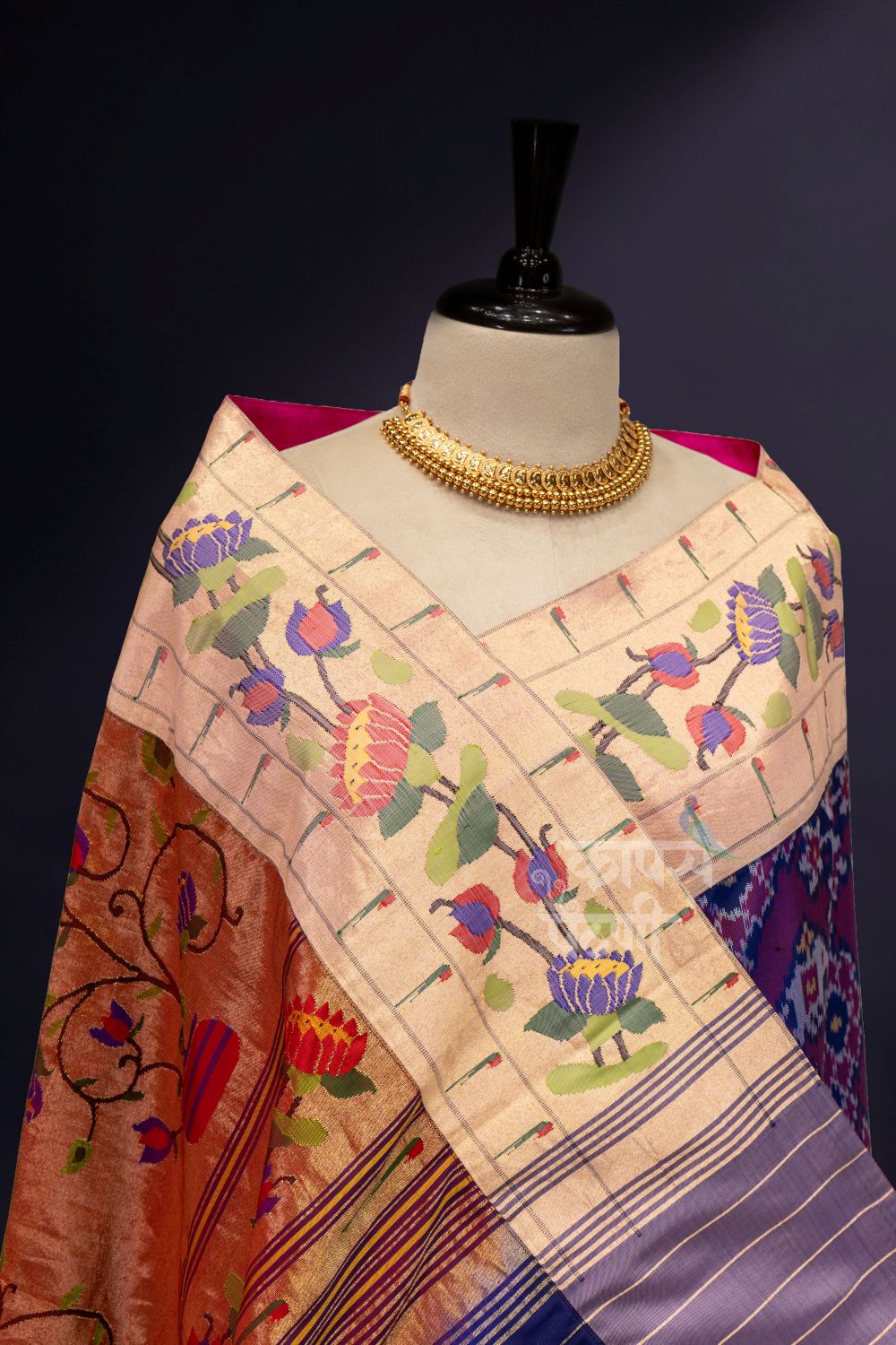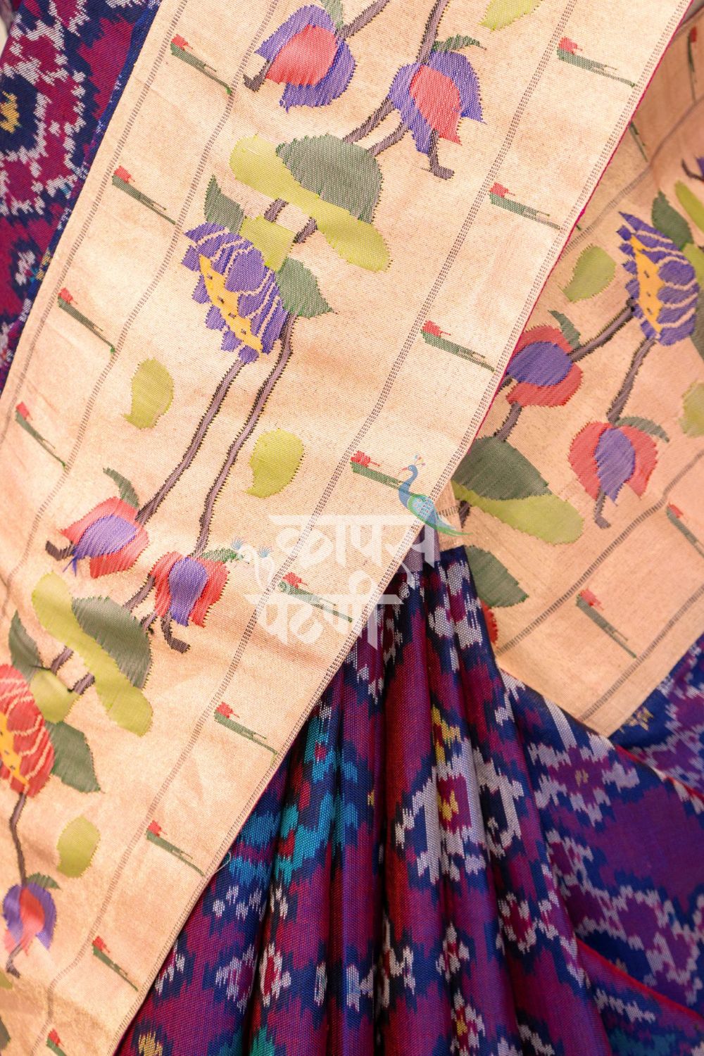 Handwoven Double Ikkat Lotus Paithani