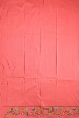 Hand crafted over a meticulous period of 4 to 5 months, this saree stands as a testament to the dedication and mastery of skilled artisans. Unlike heavily bordered designs, this piece features a refined borderless concept, offering a contemporary twist while preserving traditional weaving excellence. The clean edges enhance the fluid fall of the silk, making it lightweight in appearance yet grand in presence.
