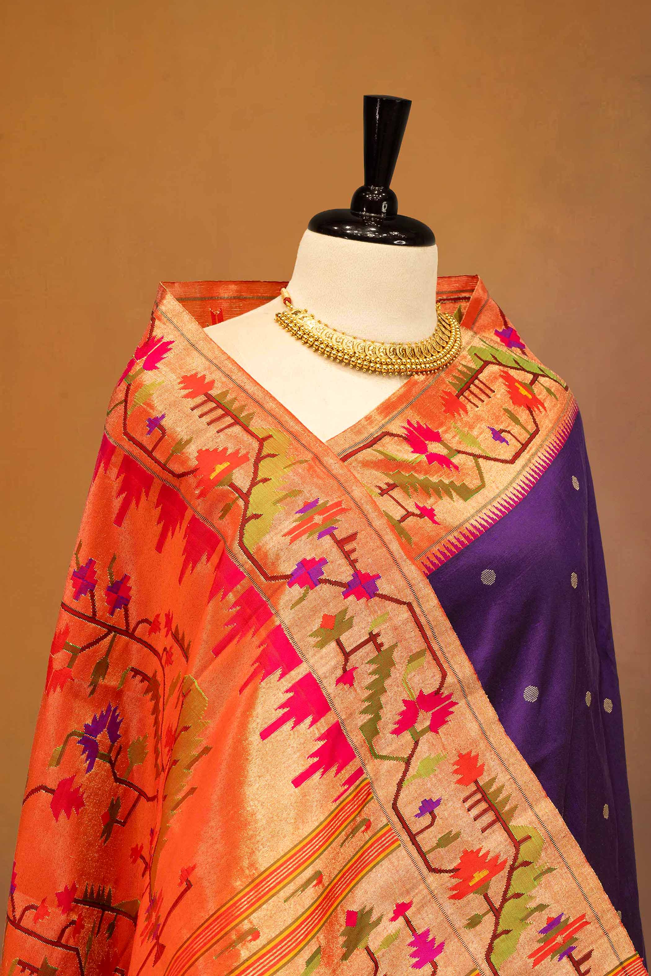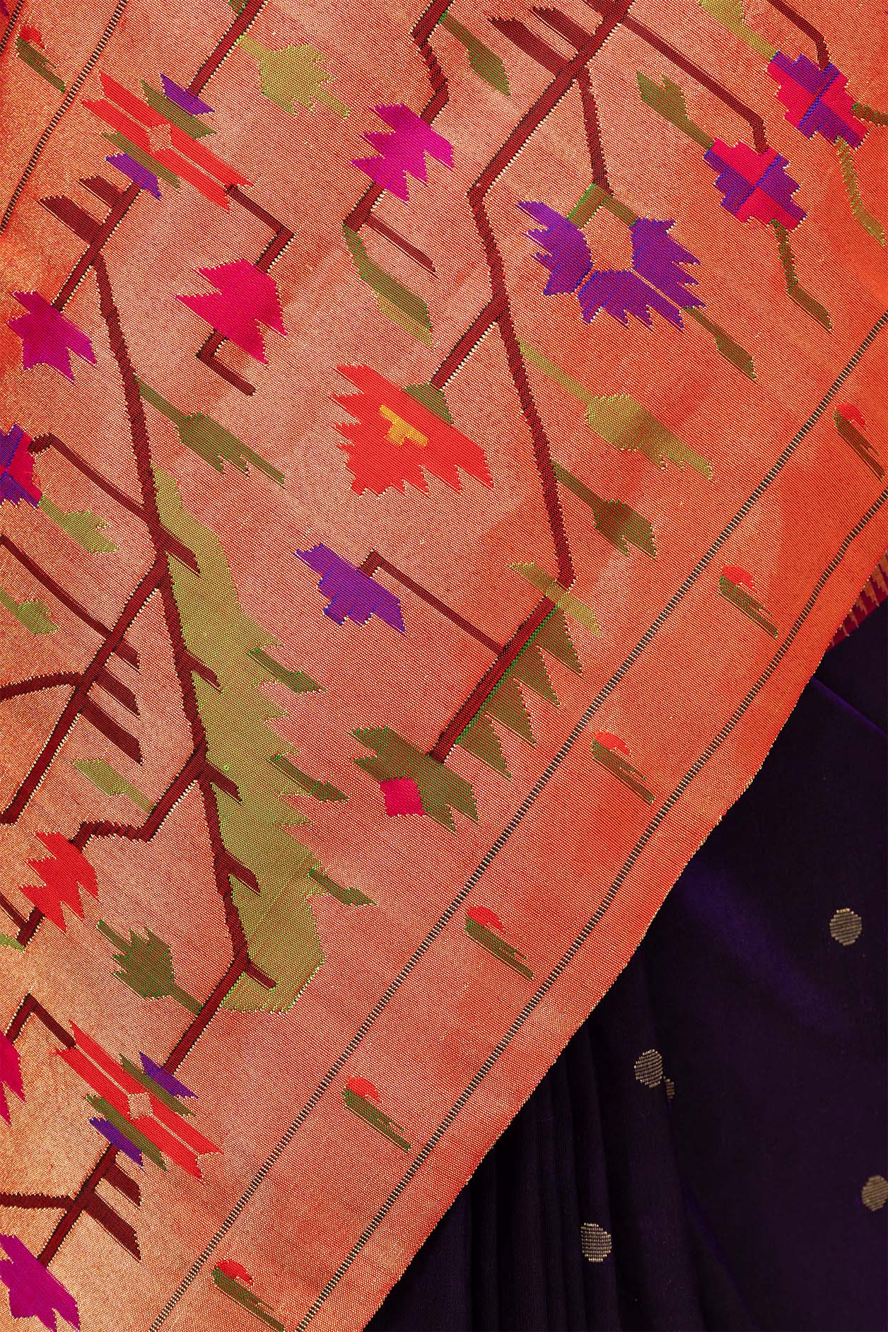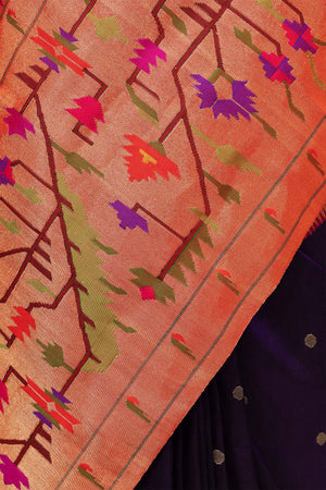 Hand Woven Half All Over Asawali Design Paithani