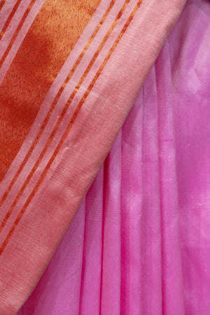 Hand Woven Pure Silk Light Pink Tripple Muniya Paithani