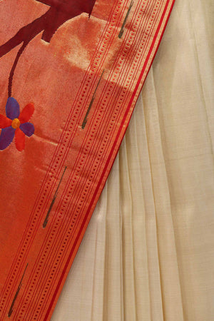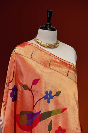 Hand Woven Pure Silk Tissue Muniya Border Paithani