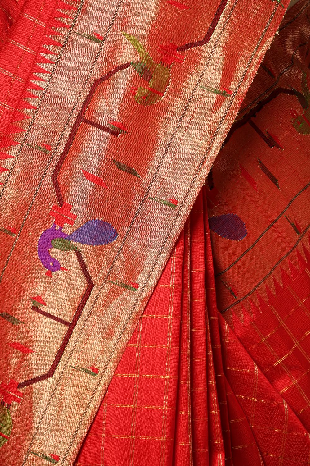 Product Name: Handloom Checks Peacock Parrot Border Paithani