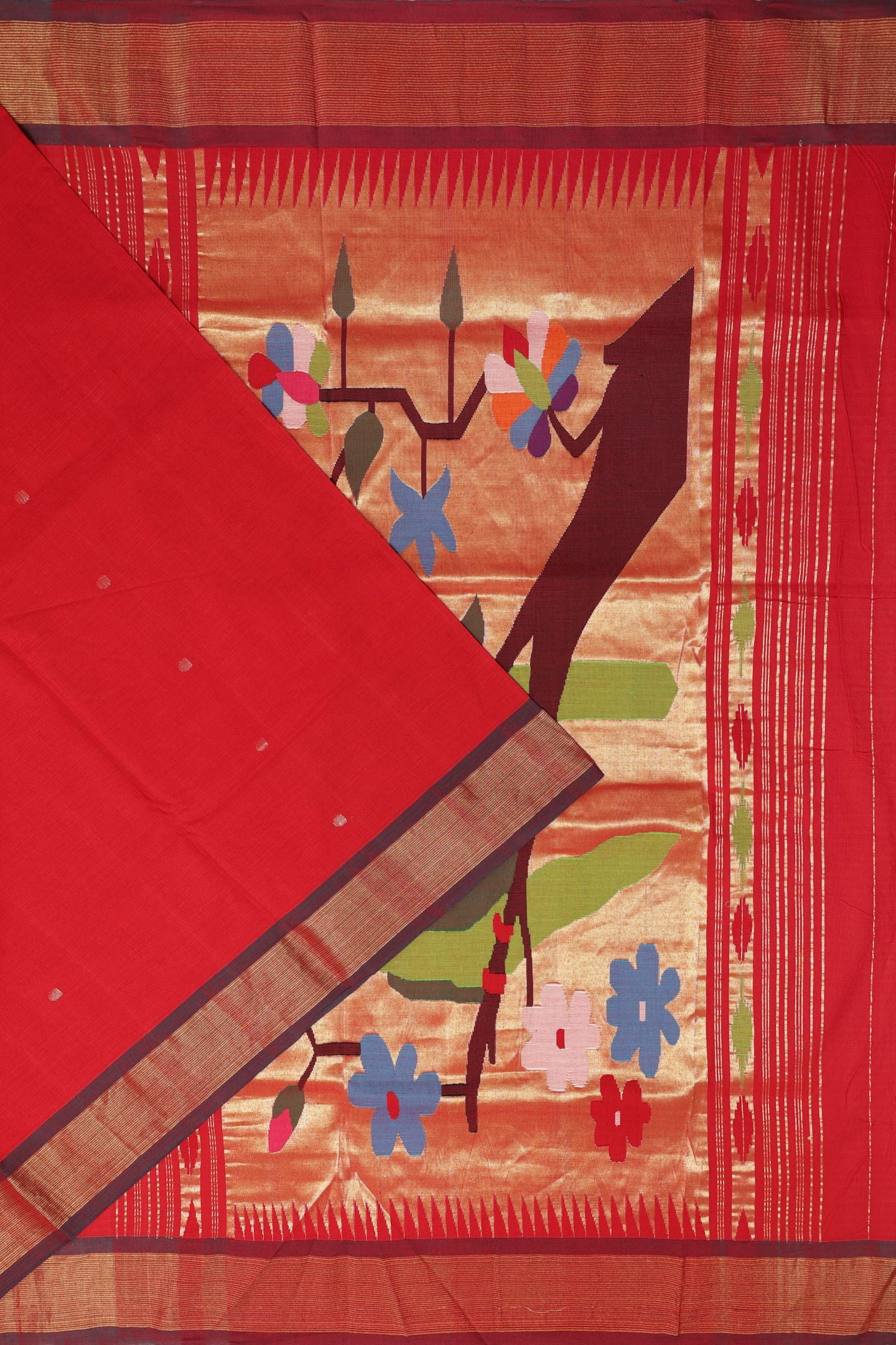 Experience the perfect blend of tradition, comfort, and luxury with this exquisite Handloom Pure Cotton Paithani Saree. This beautiful creation uses traditional Paithani weaving techniques on a breathable cotton base, making it ideal for grand events in warm weather.
