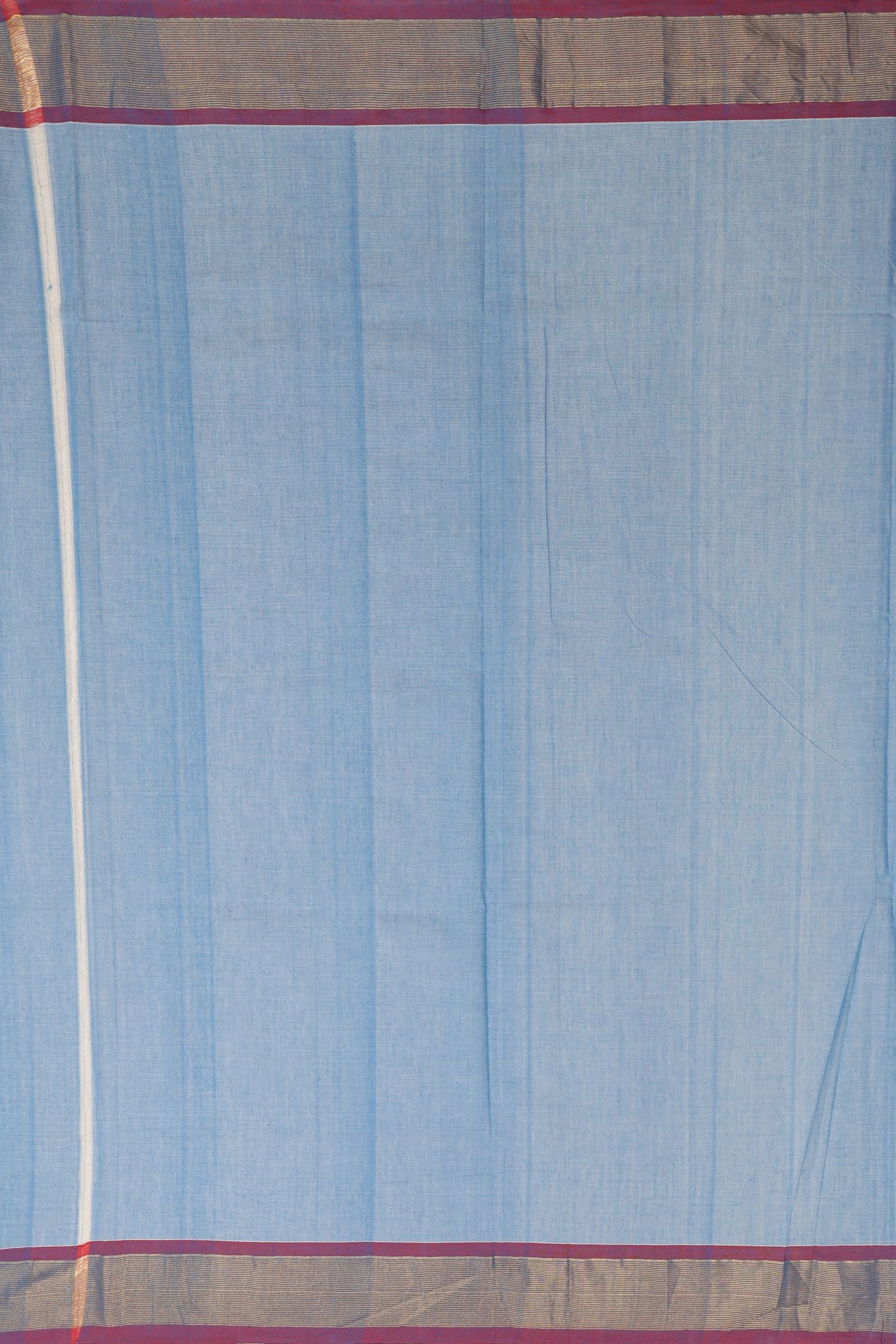 The saree features a Contrast Tissue Plain Border. The border is woven in a contrasting color and uses shimmering gold tissue threads (cotton or silk blended with metallic zari) to create a smooth, metallic frame.