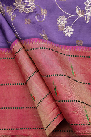Handloom Peacock Parrot Border Pitta Work Paithani