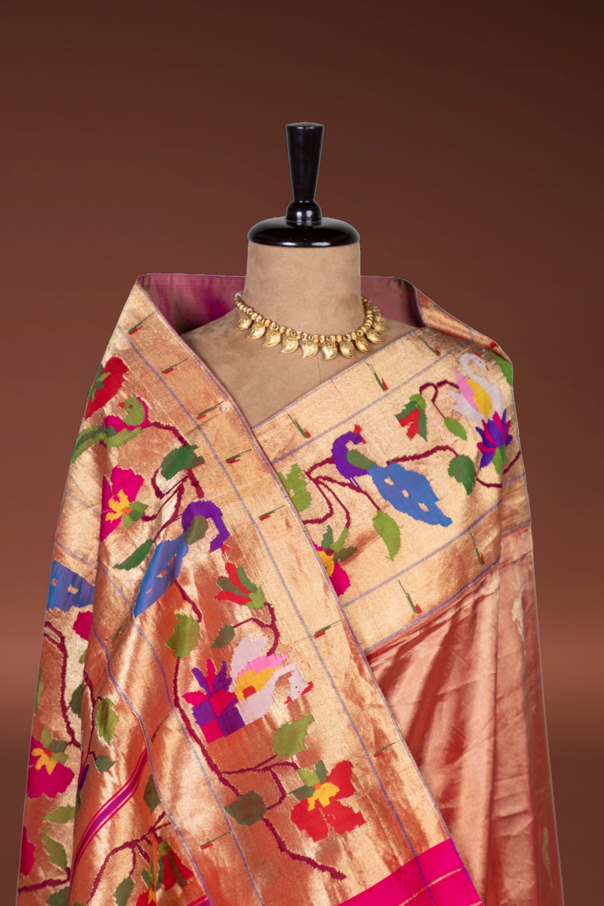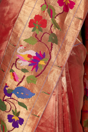 Handwoven Tissue Organza Swan Border Fusion Paithani