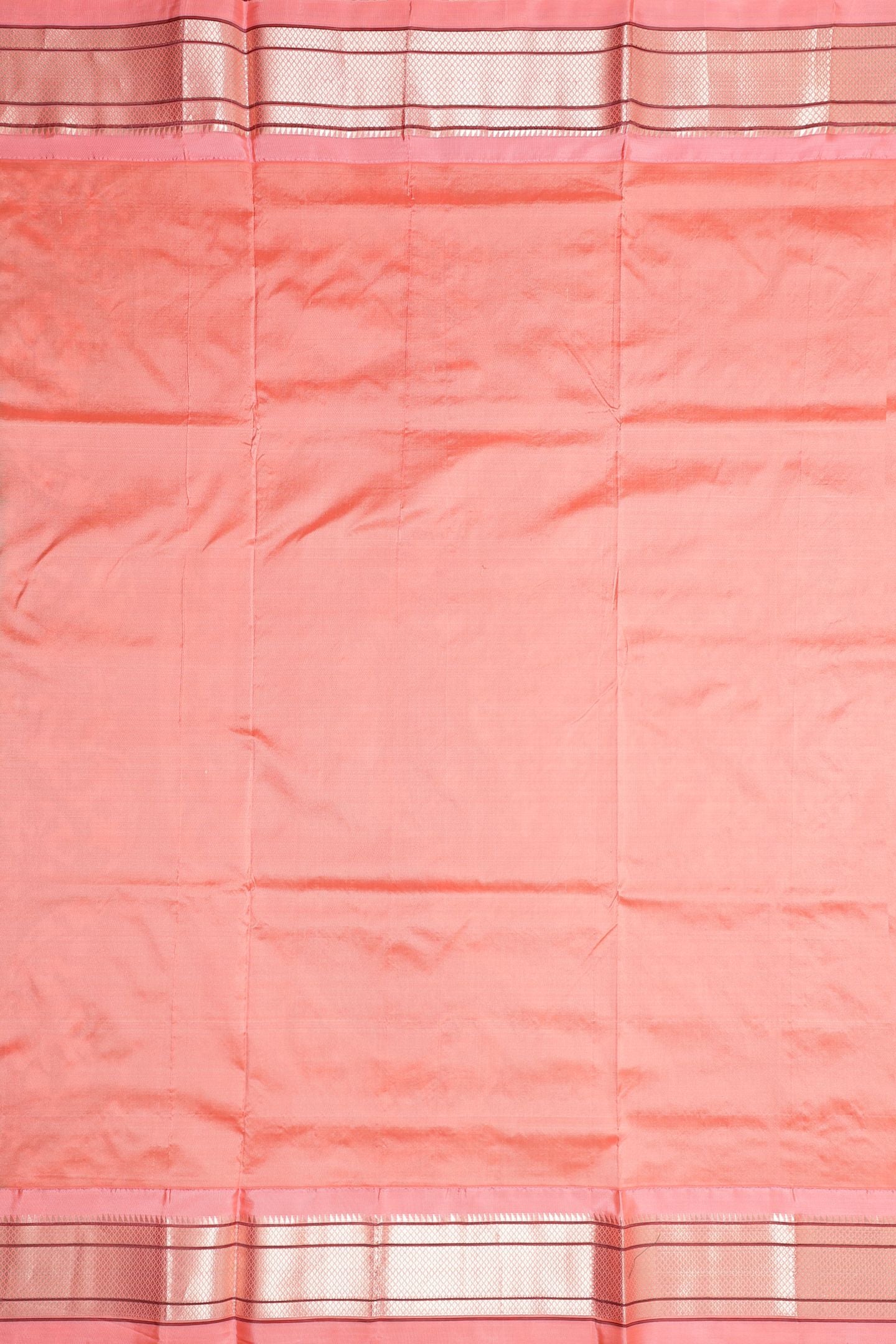 - Weave & Contrast: This is a classic Kadiyal saree featuring a sharp contrast Gajri border achieved through the durable interlocking weave. The use of a Jacquard loom ensures consistent quality and detailing across the entire drape.