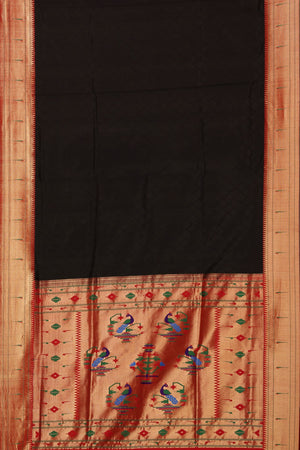 The highlight of the saree is its heavy and majestic Paithani-type traditional rich pallu. Densely woven with ornate motifs and enhanced with metallic gold jari, it reflects the grandeur of authentic Paithani craftsmanship.