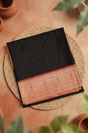 Textured Grace: Pure Silk Saree with Embossed Checks & Paithani Pallu