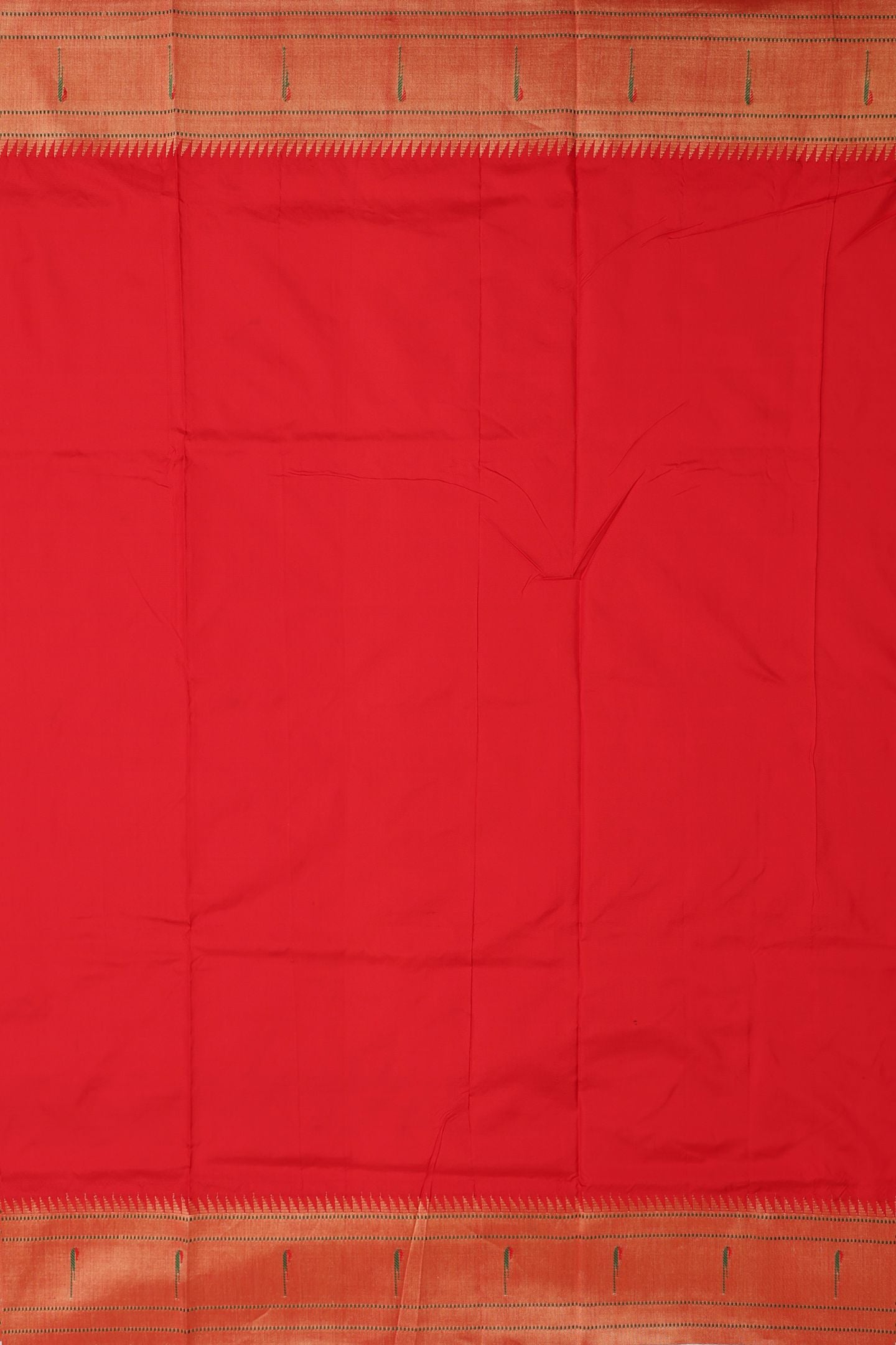 Accented with a classic Single Muniya Golden Jari Border, showcasing a distinct row of traditional Muniya (parrot) motifs. Woven in metallic gold jari, the border adds a sophisticated and timeless finish.