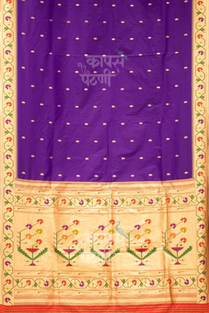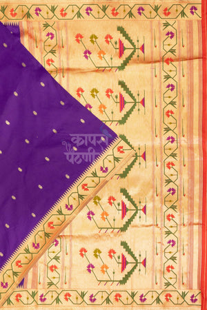 Elegant and eye-catching, this Traditional Asavali Border Designer Saree in a rich purple shade is crafted from smooth semi silk fabric that offers a graceful drape and subtle sheen. Adorned with a classic Asavali floral border and delicate jari mango butti across the body, it beautifully blends tradition with sophistication. The rich pallu enhances its festive charm, making it a perfect choice for special occasions.