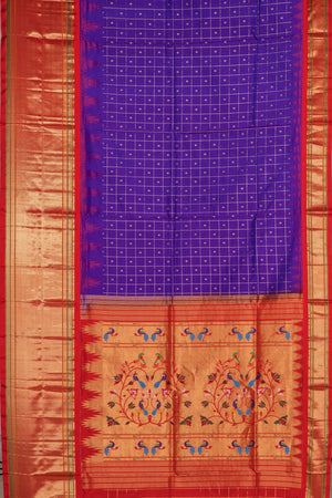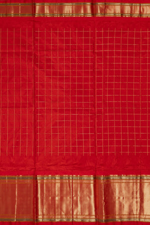The body features classic woven checks highlighted with delicate metallic jari buttas.