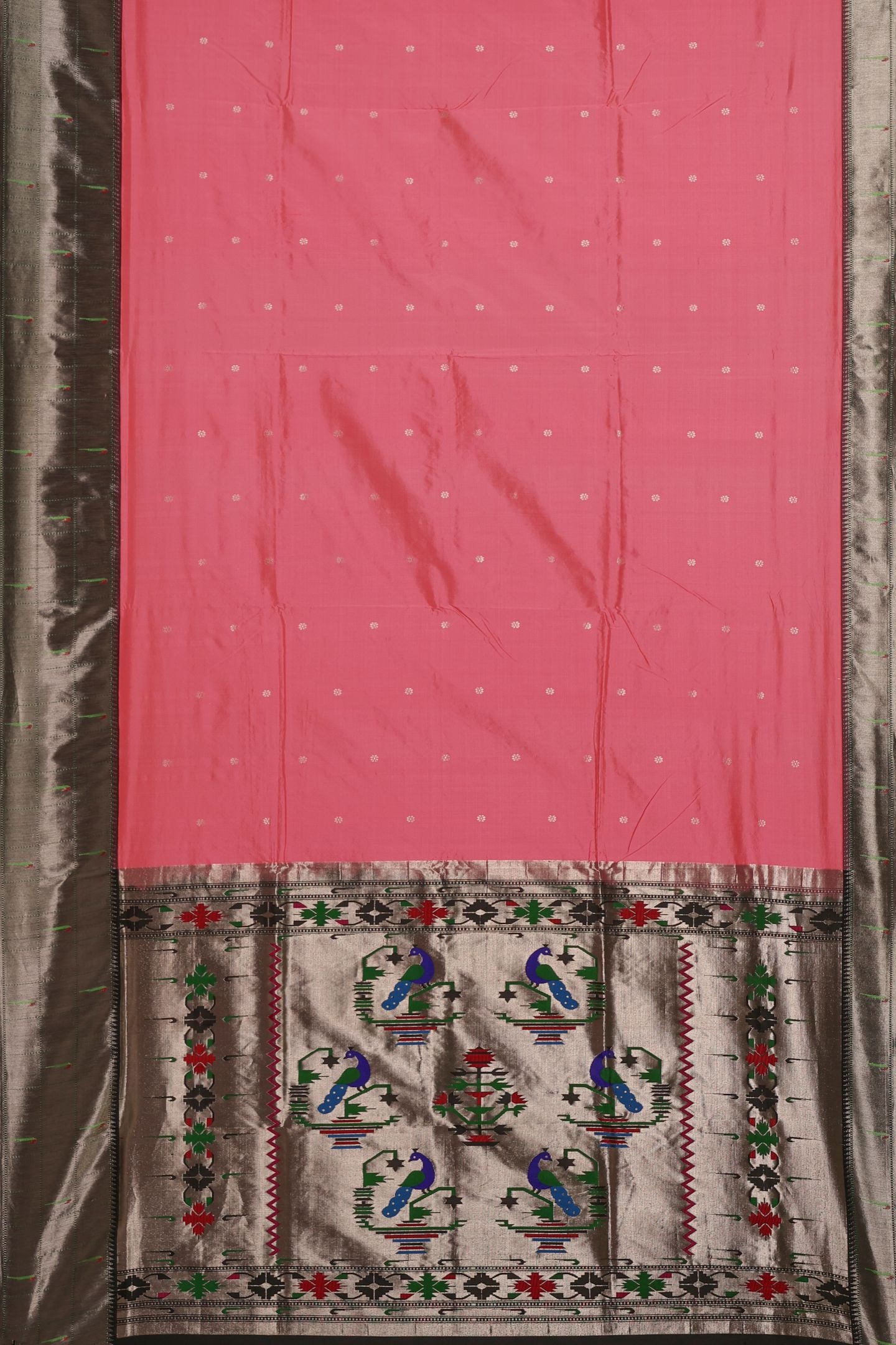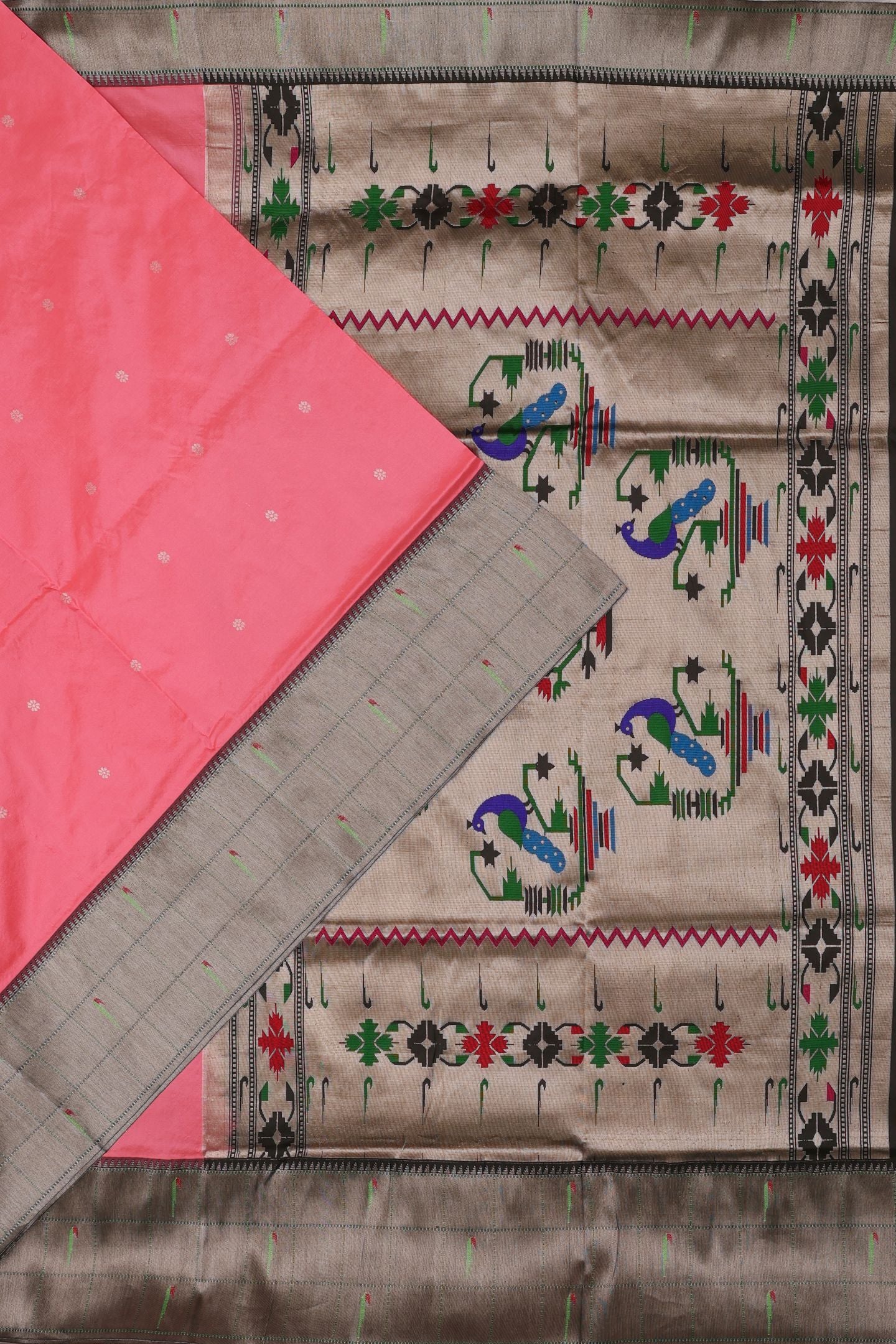Completing the saree is a Paithani Type Rich Traditional Pallu, featuring dense weaving and classic ornamental patterns. The richly worked pallu adds grandeur and serves as the focal point of the saree.