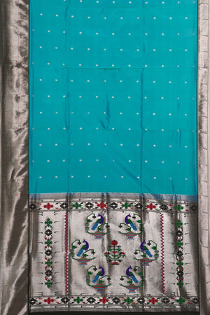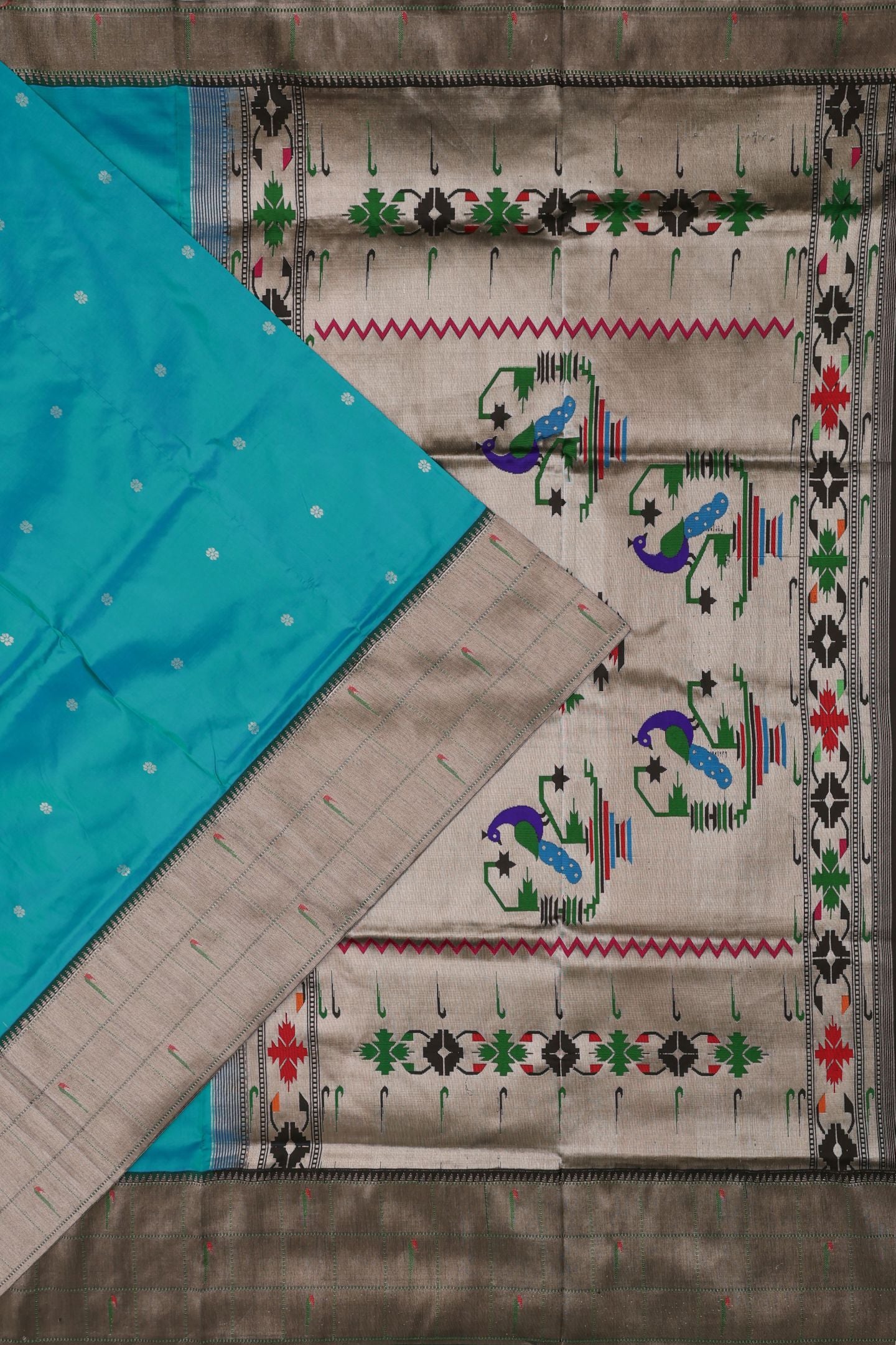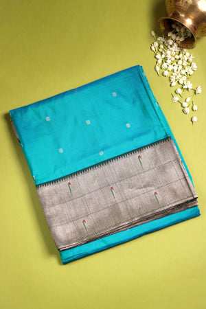 Completing the saree is a Paithani Type Rich Traditional Pallu, featuring dense weaving and classic ornamental patterns. The richly worked pallu adds grandeur and serves as the focal point of the saree.